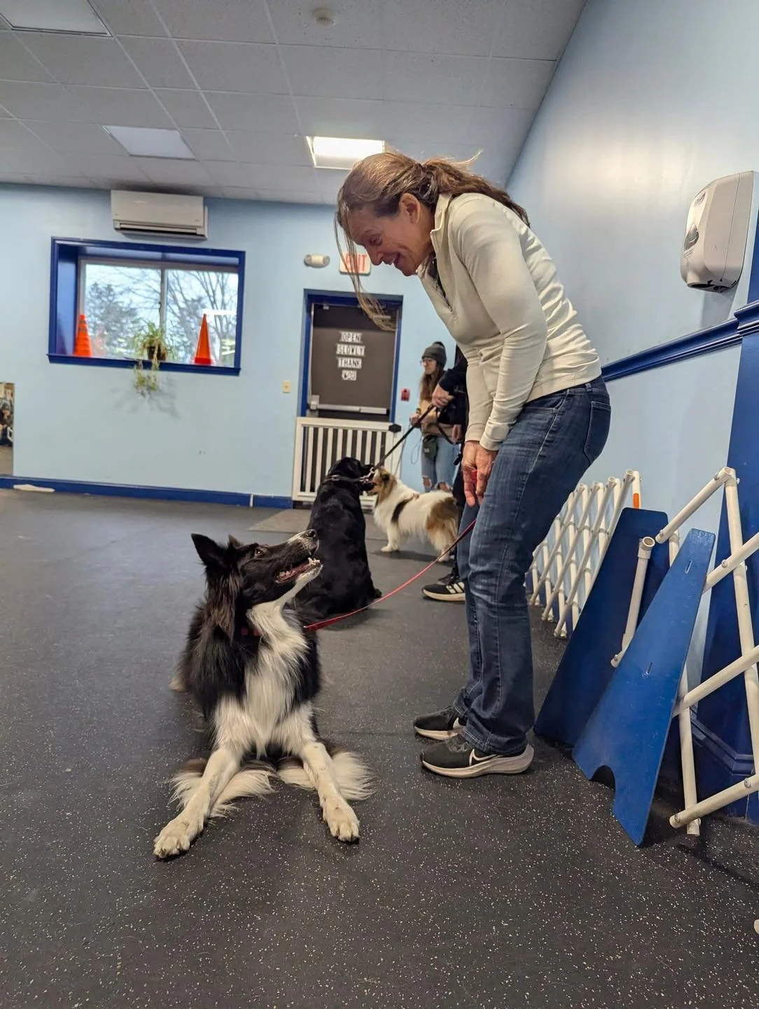 Our Therapy Dog Preparation class helps dogs and handlers build the calm, reliable skills needed for therapy work in the community. Teams practice polite greetings, loose-leash walking, and maintaining focus around distractions while developing the steady temperament expected of a therapy dog. Certification workshops are conducted through Dog B.O.N.E.S. Therapy Dogs of Massachusetts, an affiliate of the Alliance of Therapy Dogs (ATD).